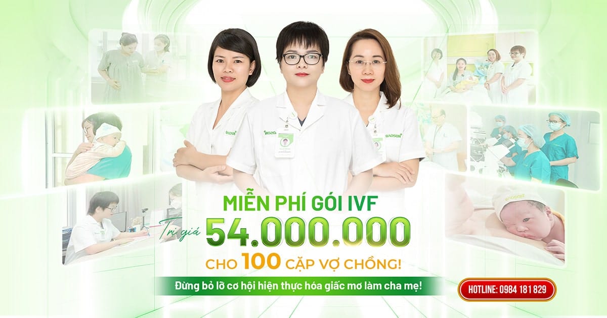 Nhằm hỗ trợ các cặp vợ chồng hiếm muộn có cơ hội hiện thực hóa ước mơ làm cha mẹ, Trung tâm IVF Bảo Sơn triển khai chương trình khuyến mãi đặc biệt MIỄN PHÍ thủ thuật IVF trị giá 54.000.000 đồng. Đây là ưu đãi lớn nhất trong năm, đặc biệt dành cho 100 cặp vợ chồng đầu tiên đăng ký và mở hồ sơ IVF hoặc Mini IVF tại trung tâm.